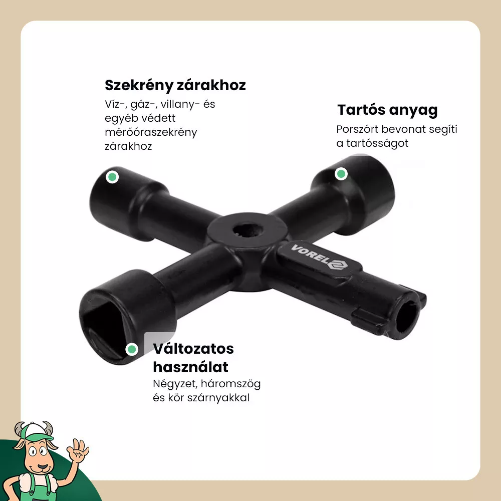 Alkalmazás: víz-, gáz-, villanyóraszekrények és más hasonlóan védett dobozok nyitása.