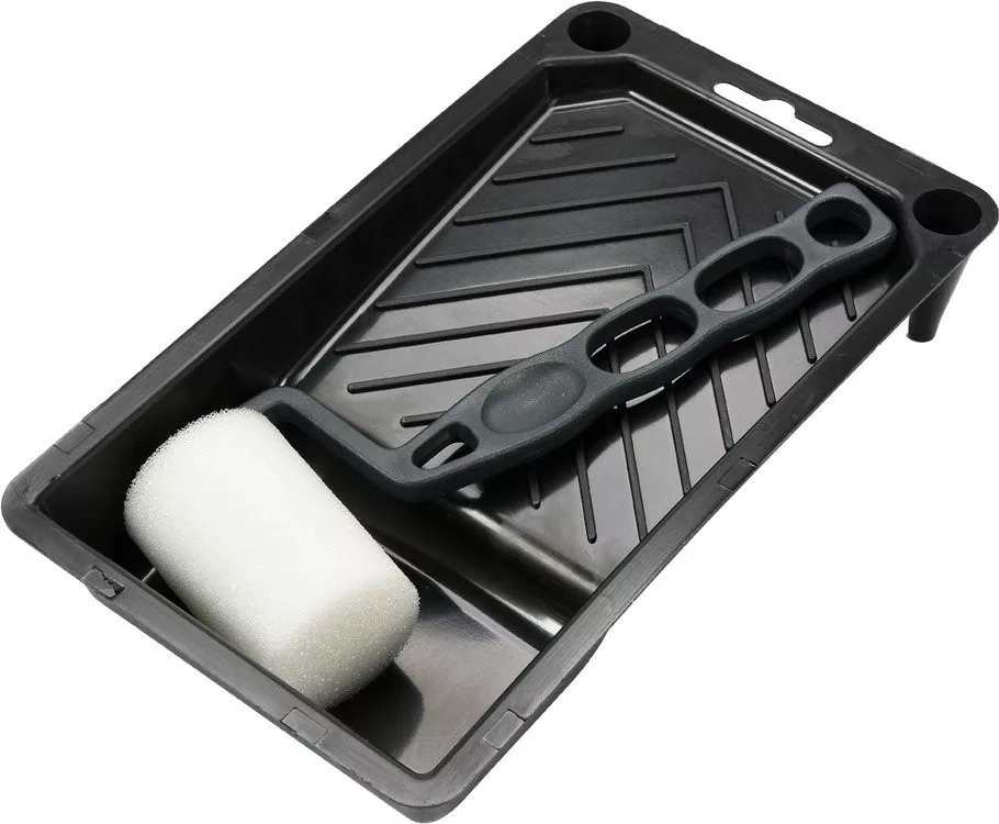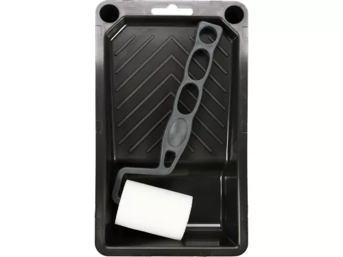 Könnyű, 50 mm hosszú festékhenger, 190x110 mm-es műanyag tálcával, amellyel a hengerből kinyomható a felesleges festék. Készlet sima és porózus felületek festésére használható mindenféle vízbázisú festékkel.