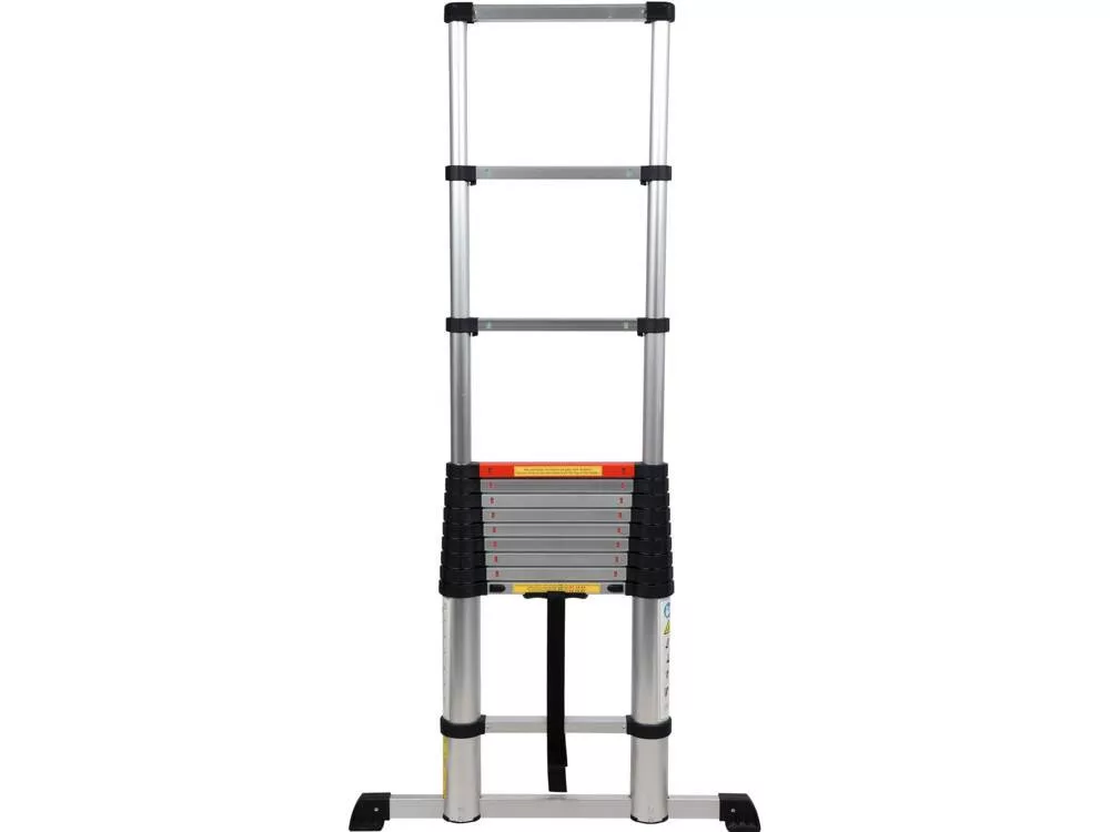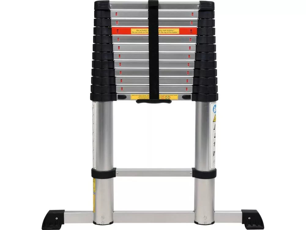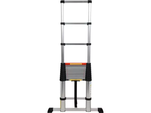 Teleszkópos alumínium létra 3,8m. 13 lépcsőfok. A teleszkópos kialakításnak köszönhetően a felhasználó igényeitől függően tetszőleges hosszúságúra, akár 3,8 m-ig is meghosszabbítható. A maximális terhelhetőség 150 kg.
