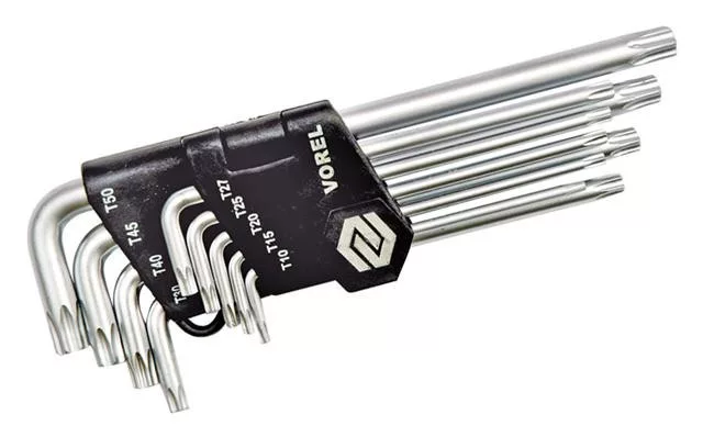Torx kulcskészlet T10-T50 mm. 9 részes. Króm-vanádium acélból készült.