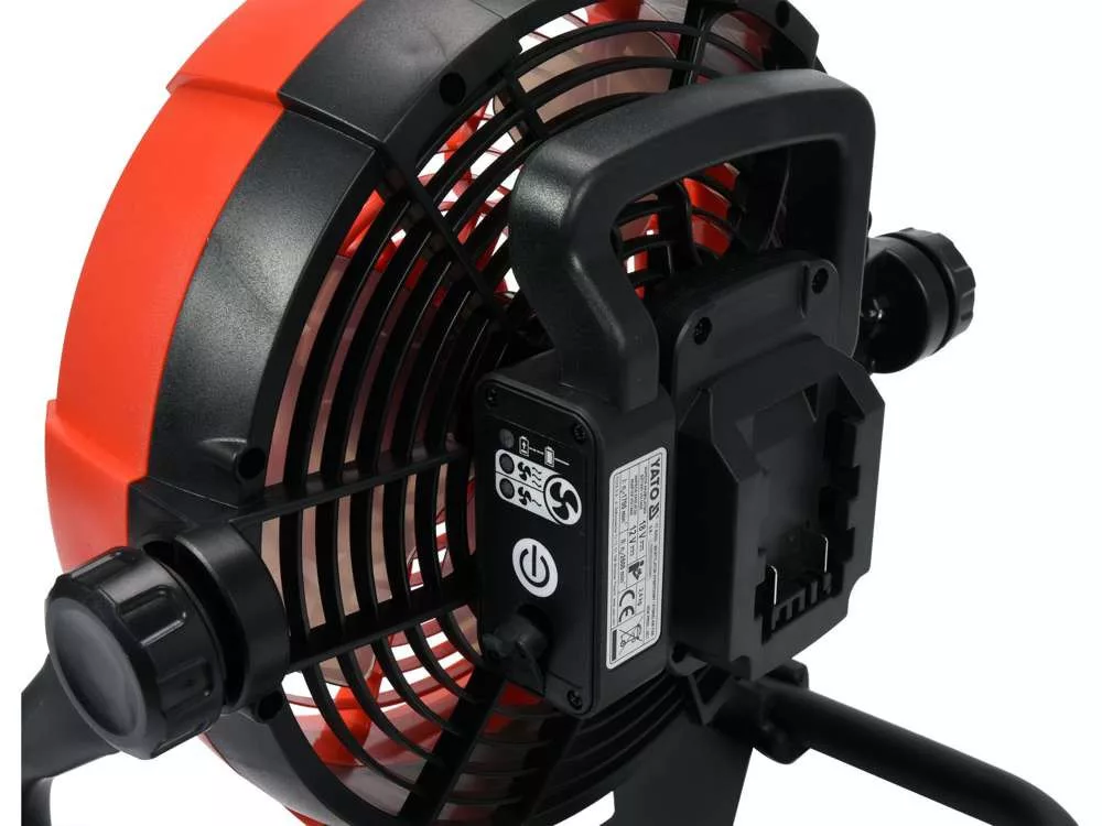 Ventilátor: hálózati aljzatról vagy a Yato System 18V sorozatú akkumulátorral (nem tartozék) működtethető.