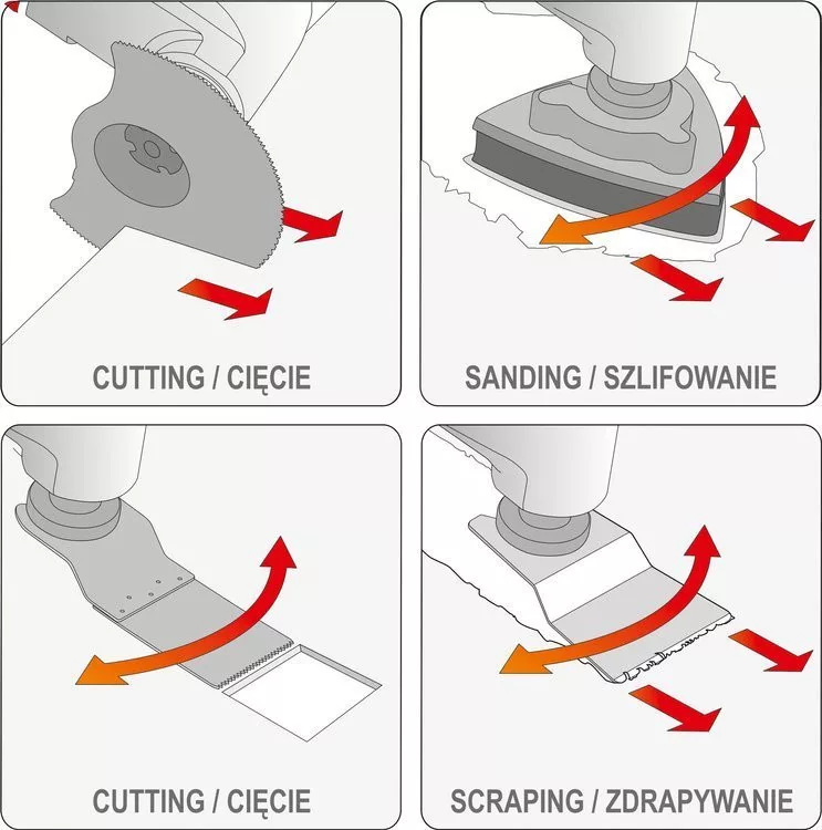 Javasolt javítás, felújítás során. Lehetővé teszi a bútordeszkák,ajtók,panelek és a padlólapok vágását a laminátum, valamint a fém elemek (szögek, csavarok) károsodása nélkül. Vágáshoz, süllyesztéshez fúrás nélkül, köszörüléshez nehezen hozzáférhető helyeken, valamint vakolatok, esztrich, ragasztók és festékbevonatok eltávolításához használják.