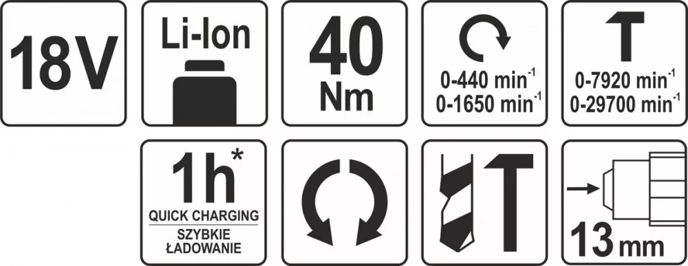 Yato akkus ütvefúró-csavarozó 40 Nm 18 V Li-Ion (akku + töltő nélkül)