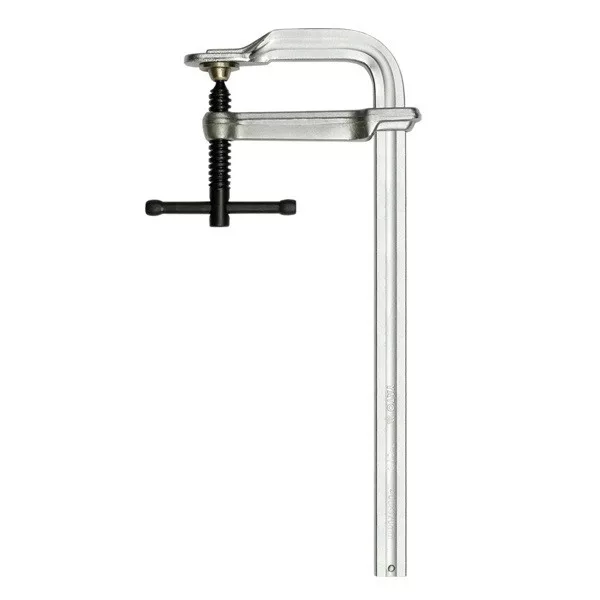Gyorscsavarszorító 300 x 120 mm-es, teljesen acélból kovácsolt, ácsmunkákhoz, krómozott felülettel.