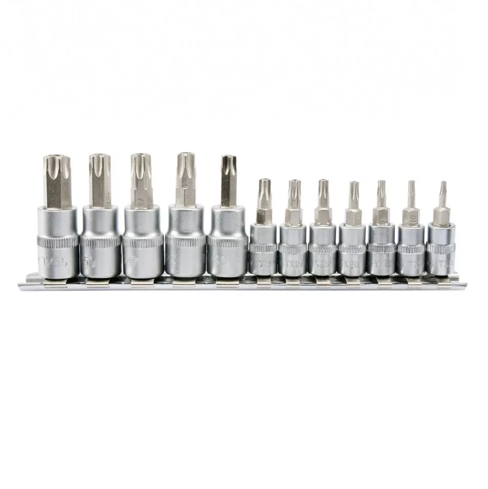 Torx Biztonsági bithegy dugófejjel, 37; 48 mm - 1/4; 3/8 col - 12 részes készlet, pótolhatatlan eszköz az autó- és gépészeti műhelyekben.