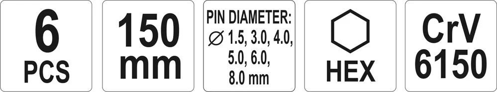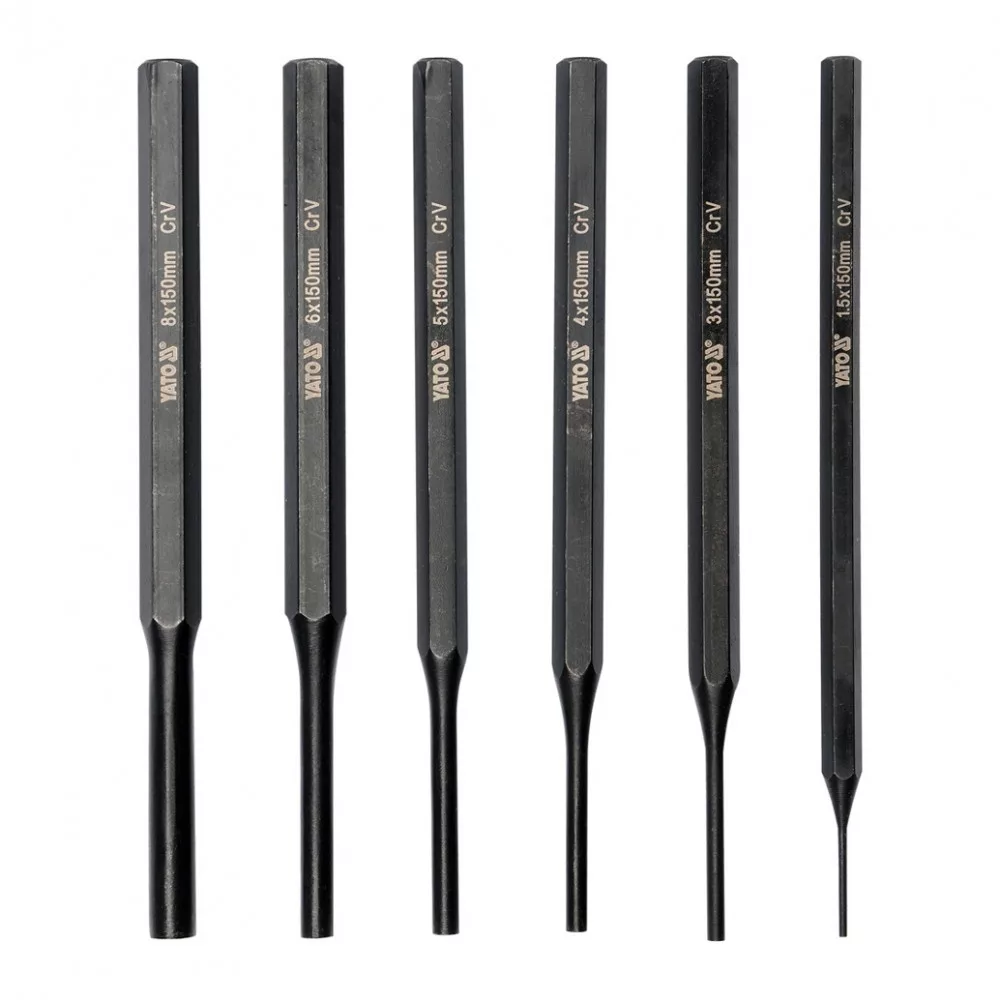 Csapszegkiütő készlet 6 részes 150mm, kiváló minőségű CRV 6150 acélból, megfeketedett felülettel.