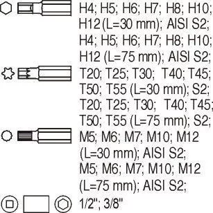 Torx: T20; T25; T30; T40; T45; T50; T55;