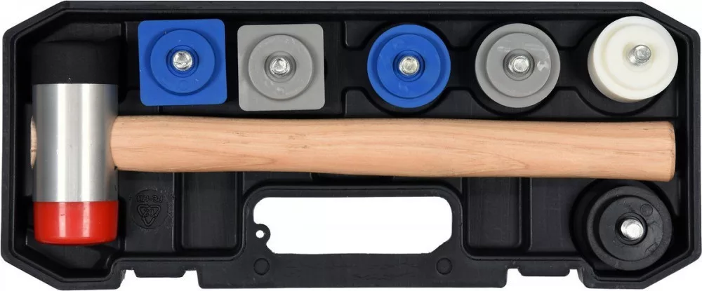 Szerelőkalapács 8 cserélhető fejjel, különböző keménységgel.
