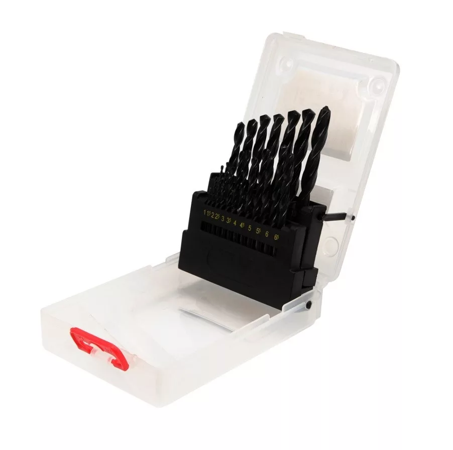 Fémfúró készlet 19 részes 1 mm-től 10 mm-ig, kiváló minőségű HSS 6542 gyorsacélból, ipari és kézműves használatra.