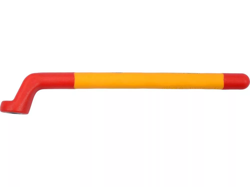 Professzionális hajlított csillagkulcs VDE szigetelt fogantyúval, kiváló minőségű CrV acélból.