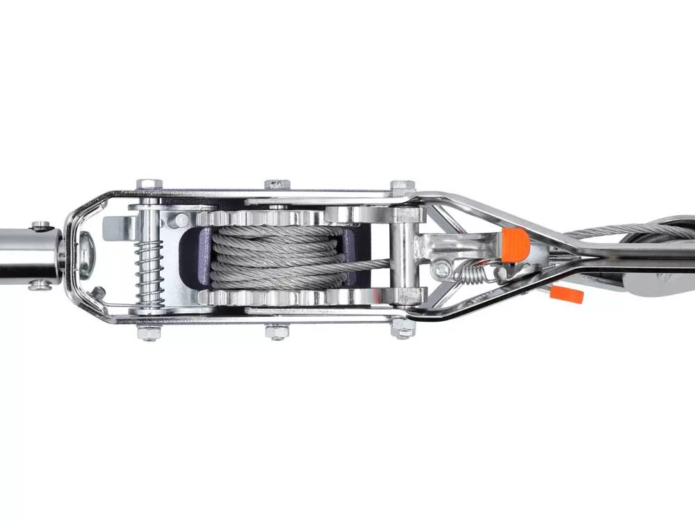Kézi csörlő, teherbírása körülbelül 1325 kg, erős strapabíró kábellel.
