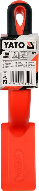 Drótkefe 180 mm-es 5 soros, rozsdamentes, rugalmas acélhuzalból.