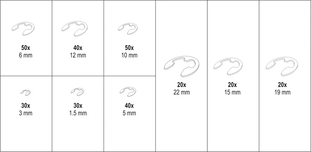 x300 (Ø1,5 mm x30, Ø3 mm x30, Ø5 mm x40, Ø6 mm x50, Ø10 mm x50, Ø12 mm x40, Ø15 mm x20, Ø19 mm x20, Ø22 mm)