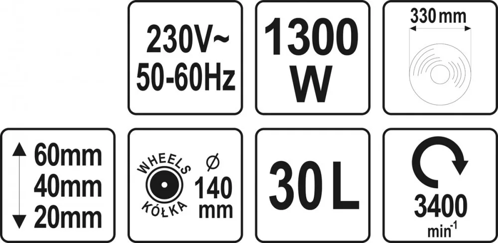 Elektromos fűnyíró 1300W, állítható vágási magasság.