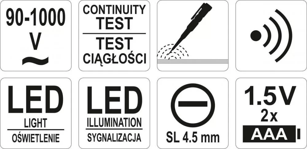 A kábelekben észlelt feszültséget egy LED és egy hangjelzés jelzi. A hegy és a szigetelt vezeték közvetlen érintkezésének kiküszöbölése azonban növeli a használat biztonságát és felgyorsítja a munkát .