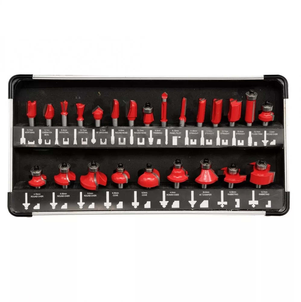 Felsőmaró készlet 24 részes, faanyag és néhány műanyag precíziós megmunkálásához.