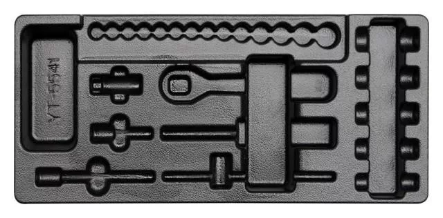 Dugókulcs készlet 25 részes, YT-5541 tartalma fér el ebben az üres fiókbetétben.