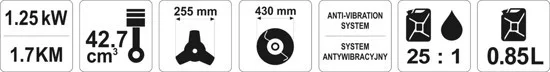 Yato benzines fűkasza 42,7 cm3 0,85 l