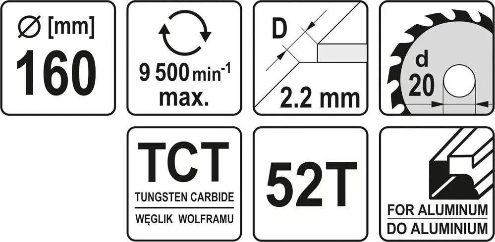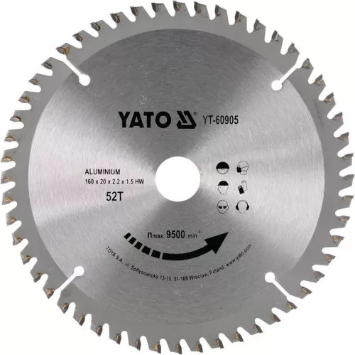 Yato fűrésztárcsa alumíniumhoz 160 x 20 x 1,5 mm / 52T