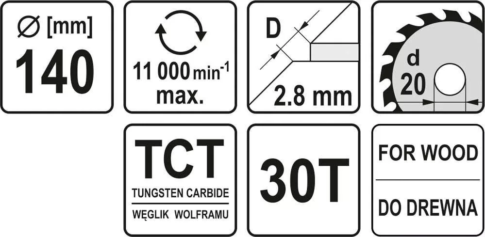 Yato fűrésztárcsa fához 140 x 20 x 2,0 mm / 30T