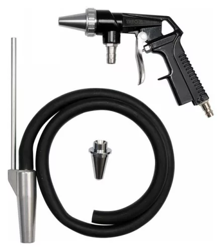 Homokfúvó pisztoly tömlővel, régi festékbevonatok, rozsda és egyéb szennyeződések felületeinek tisztítására, valamint a felület formálására szolgál.