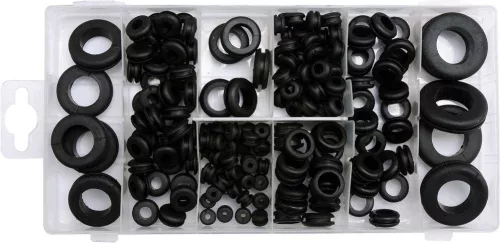 Kábelátvezető gumigyűrű készlet 180 részes, praktikus tárolóban.