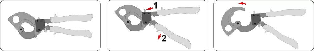 Racsnis kábelvágó fogó 240 mm d=17,5 mm, vágópofák 60SiMn nagy széntartalmú rugóacélból.