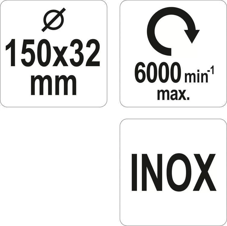 Yato körkefe 150 x 32 mm szűkítőgyűrűkkel inox