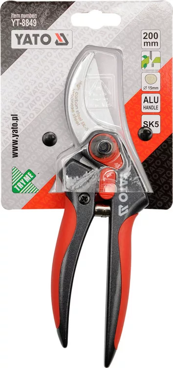 Metszőolló 200 mm-es univerzális, nyél csúszásgátló anyaggal borított alumíniumból készült.