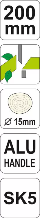 Legfeljebb 15 mm átmérőjű ágak vágására alkalmas.