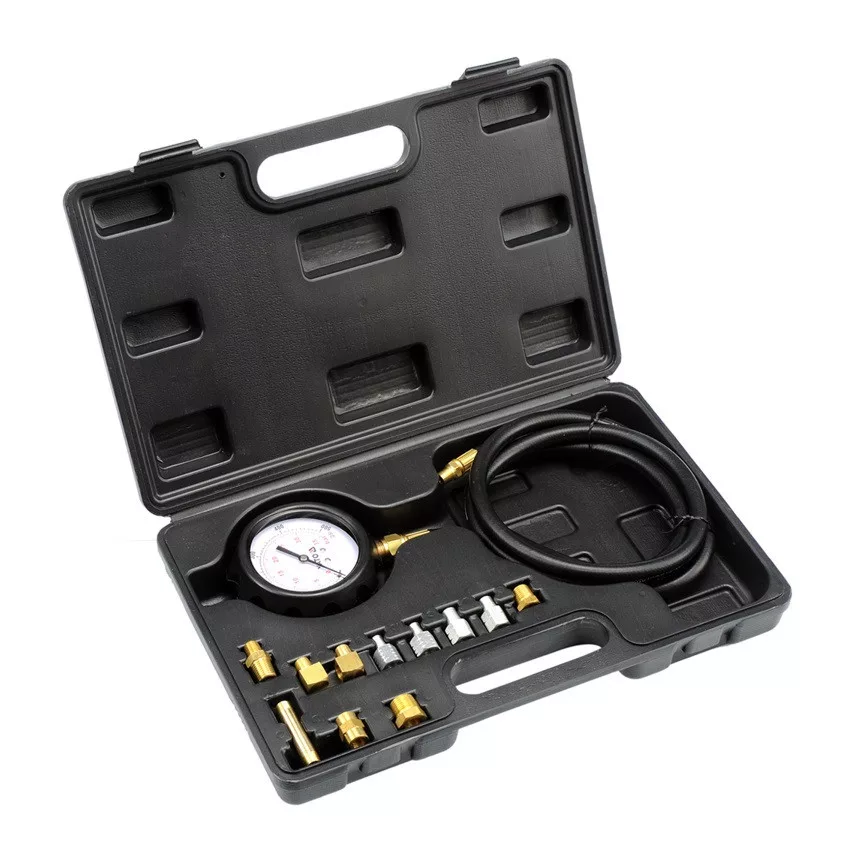 Olajnyomásmérő készlet 12 részes, speciális gumiborítással van felszerelve.