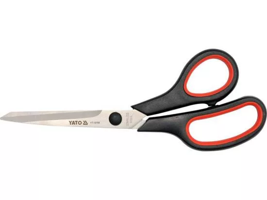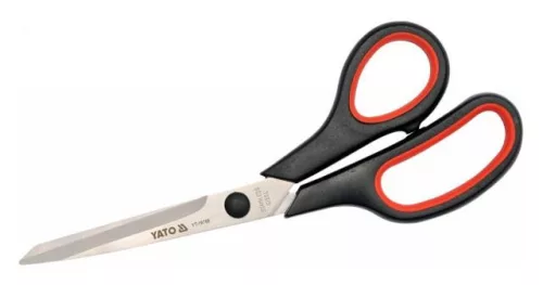 Műszaki olló 215 mm hosszú, rozsdamentes acélból, textilanyagok, papírok, nem szőtt anyagok vágásához.