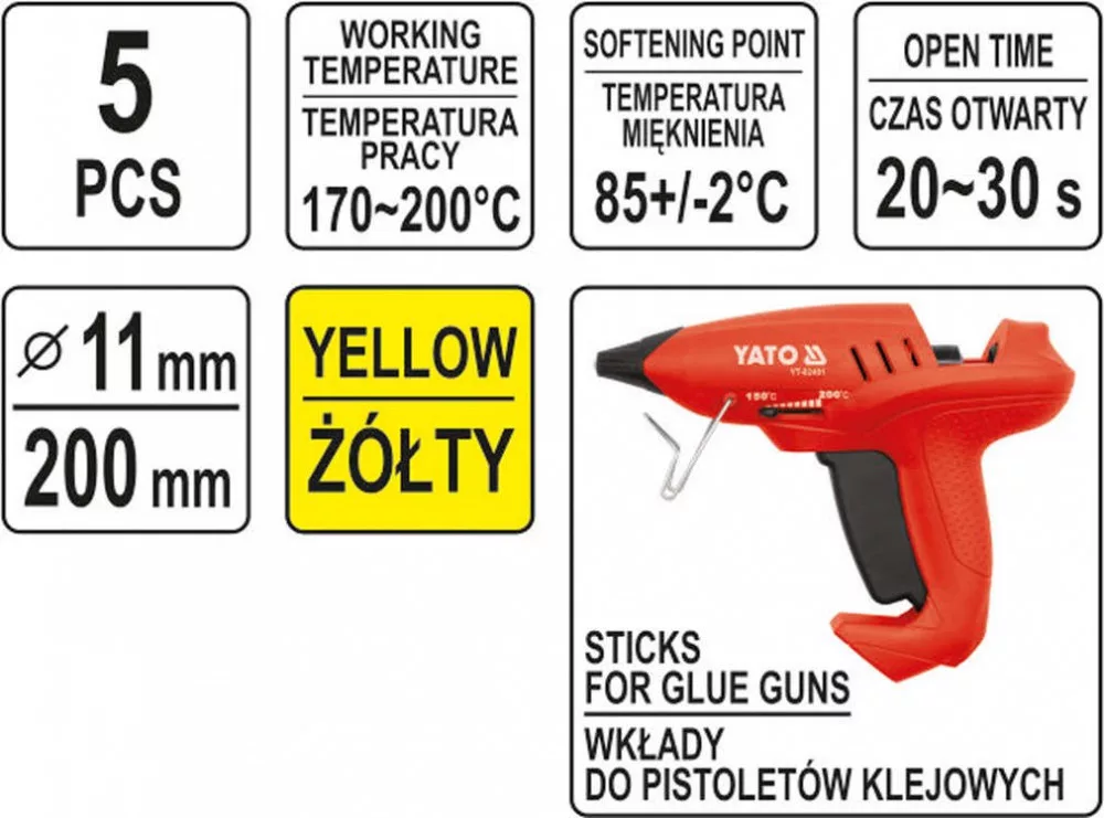 Yato ragasztórúd 11 x 200 mm, sárga, 5db