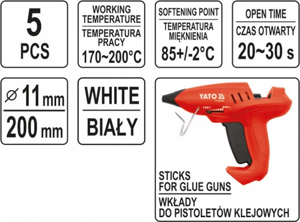 Yato ragasztórúd 11 x 200 mm, fehér, 5db