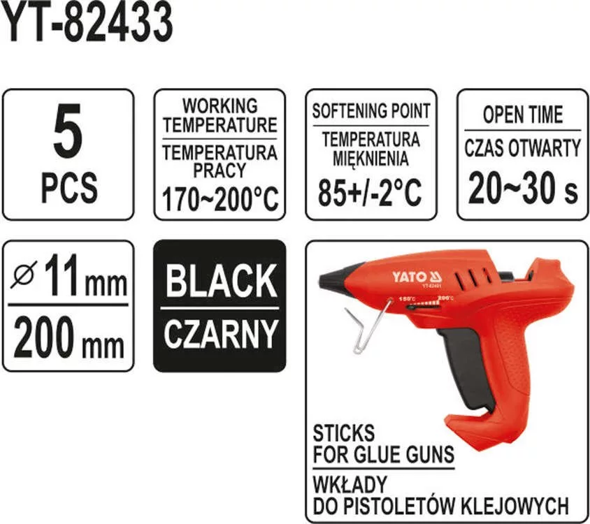 Yato ragasztórúd 11 x 200 mm, fekete, 5db