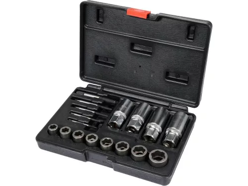 Törtcsavarfej és törtcsavar kiszedő készlet 17 részes, gépészeti és autóipari szervizekhez ajánlott.