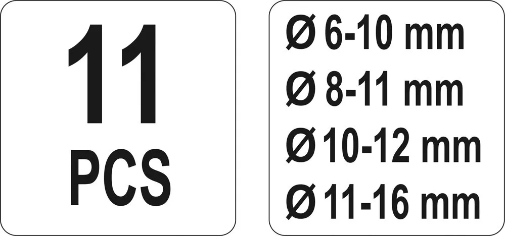 Átmérők: Ø6-10 mm, Ø8-11 mm, Ø10-12 mm, Ø11-16 mm