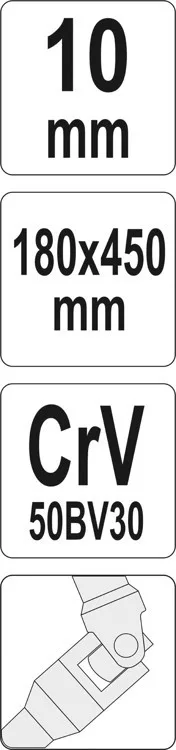Csuklós T-kulcs 10 mm / 450 mm-es, tartós 50BV30 króm-vanádium szerszámacélból.