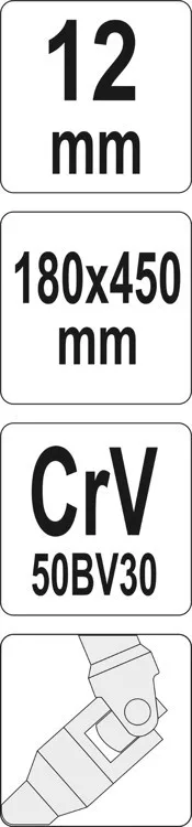 Csuklós T-kulcs 12 mm / 450 mm-es, tartós 50BV30 króm-vanádium szerszámacélból.