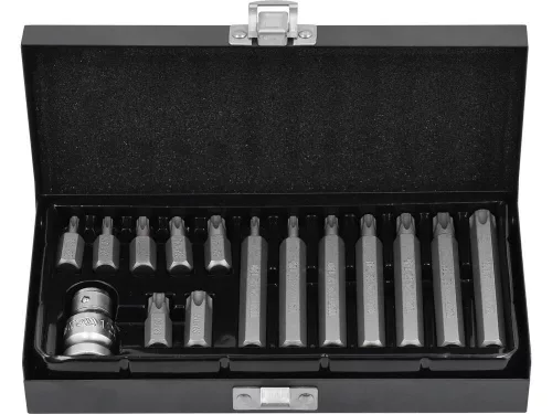 Bit készlet, 30/75 mm - 1/2 col - 15 részes, speciális Torx csavarok kicsavarásához, CRV 6150 acélból.