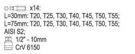 T20, T25, T30, T40, T45, T50, T55 L= 75 mm