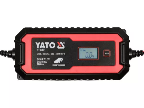 Yato akkumulátor töltő 6/12 V 2/8 A max. 200 Ah LCD kijelző