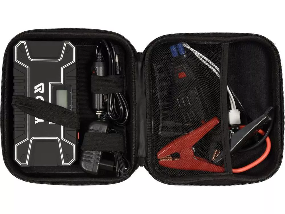 Akkumulátor indító, lehetővé teszi más, normál esetben USB-porton keresztül eszközök töltését is.