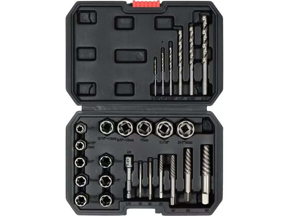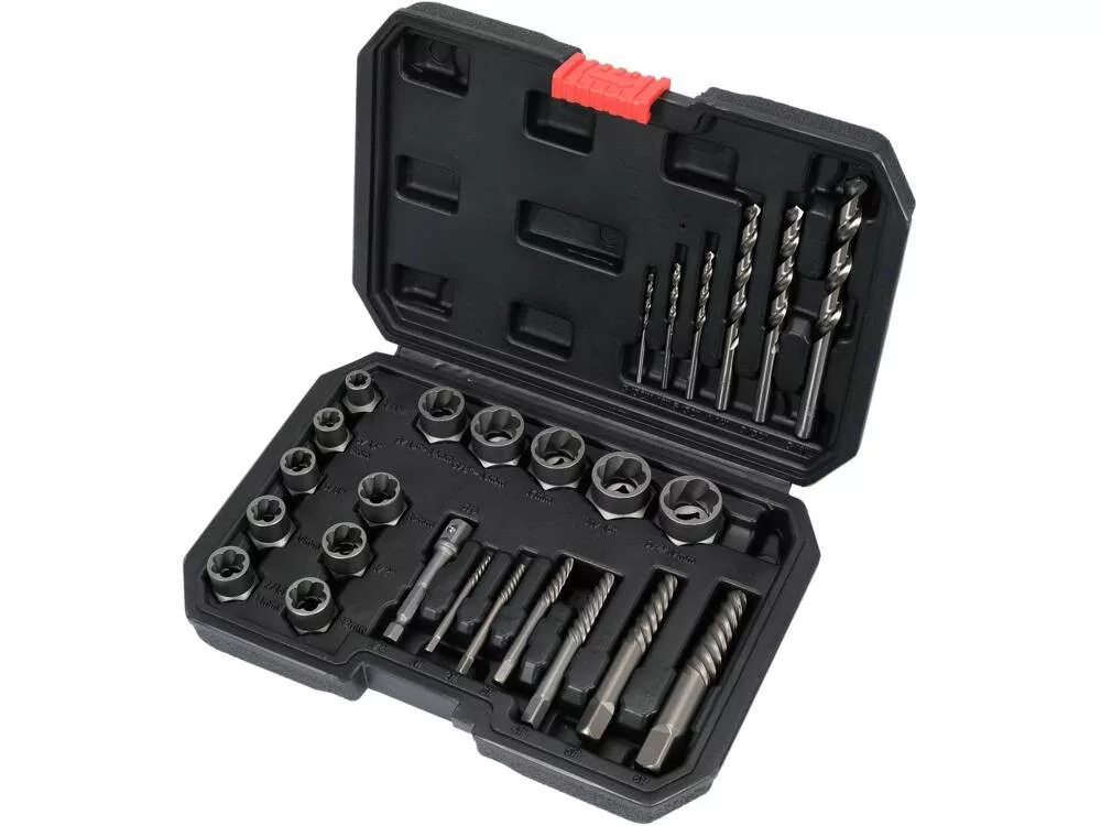 Univerzális, 26 darabos elszívókészlet csavarok, csapok és anyák kicsavarásához.