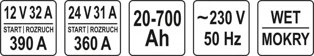 Yato akkumulátor töltő-indító 12-24 V / 360 A / 20-700 Ah