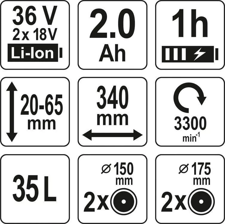 Yato akkus fűnyíró 340 mm 2 x 18 V (2 x 2,0 Ah akku + töltő)