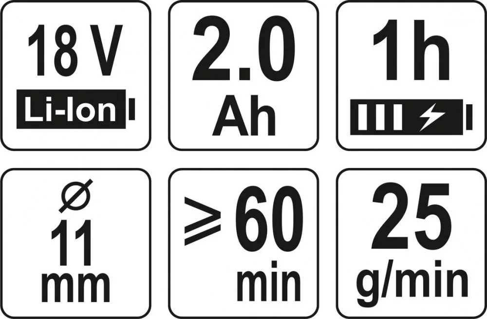 Yato akkus ragasztópisztoly 11 mm 18 V Li-Ion (1 x 2,0 Ah akku + töltő)