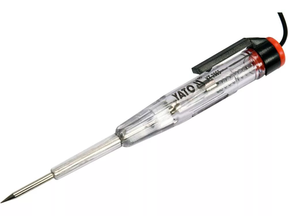 LED-diódával felszerelt Autóvillamossági teszter. Mérési tartomány 6 V és 24 V között. Kábel hossza 90 cm.