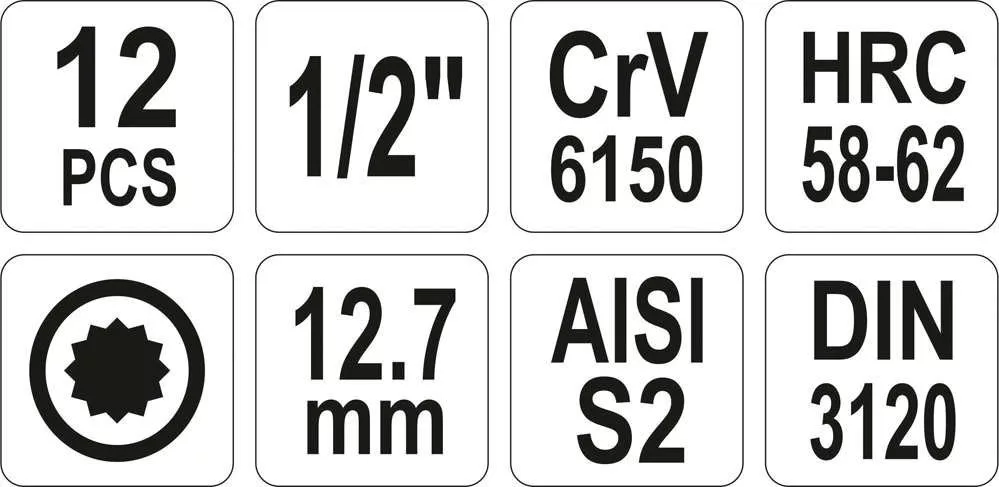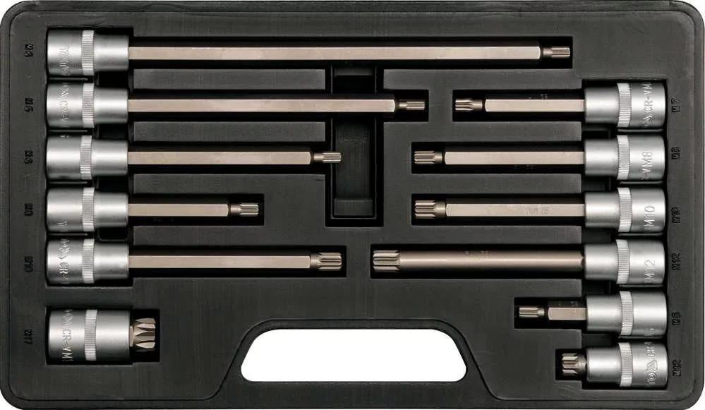 Bit dugókulcs készlet 12 részes Spline 1/2" M5-M17, kiváló minőségű S2, CrV 6150 acélból.
