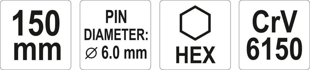 Csapszegkiütő 6 x 150 mm-es, króm-vanádium acélból CRV 6150, megfeketedett felülettel.